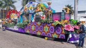 Música de banda y el bonito arco de la entrada, fueron lo que resaltaron en la decoración de su carro alegórico, pintado por el artista Humberto Valderrama, plasmando flores de clavellinas, representativas de ese municipio, además de su arte étnico y alegría que los caracteriza.